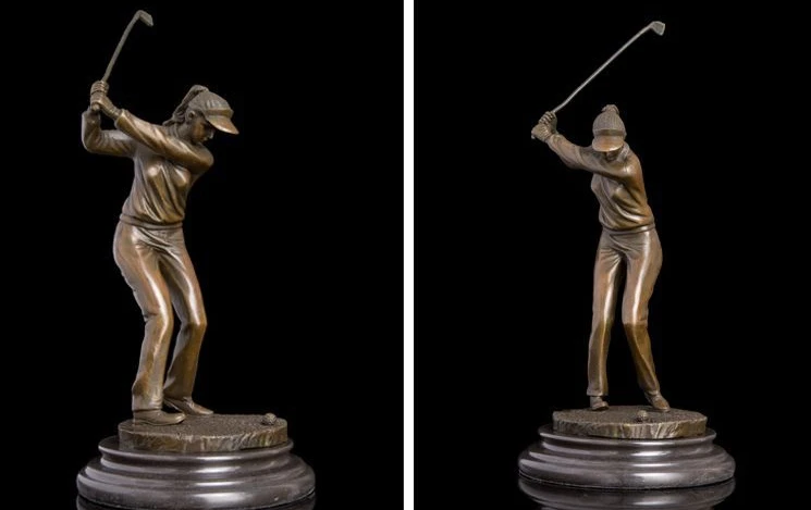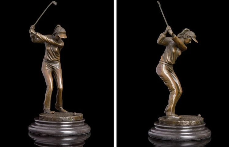 Art Deco Sculpture Female Golf Player Bronze Statue